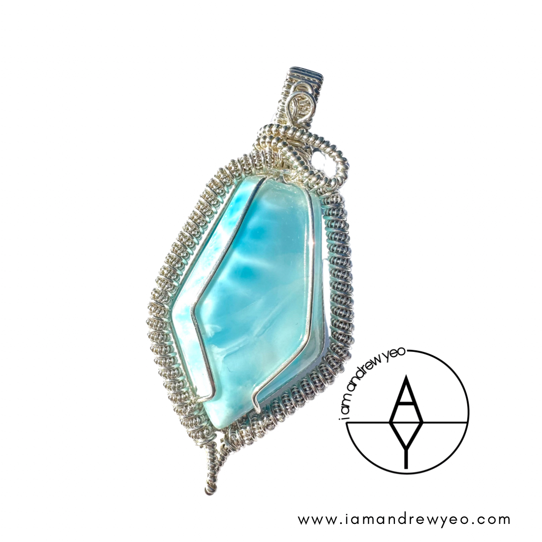 Larimar is the embodiment of the tranquil Sea and Sky energies. Its soft, soothing blues and calming turquoise is streaked with white patterns that resemble sunlight dancing beneath Caribbean waters. It brings the ancient wisdom of Atlantis and the healing power of dolphins to harmonize the body and soul.