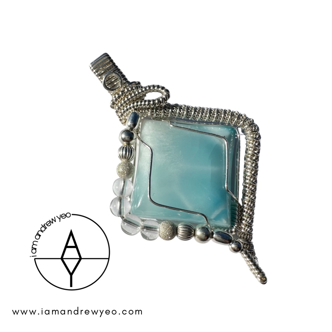 Larimar is the embodiment of the tranquil Sea and Sky energies. Its soft, soothing blues and calming turquoise is streaked with white patterns that resemble sunlight dancing beneath Caribbean waters. It brings the ancient wisdom of Atlantis and the healing power of dolphins to harmonize the body and soul.