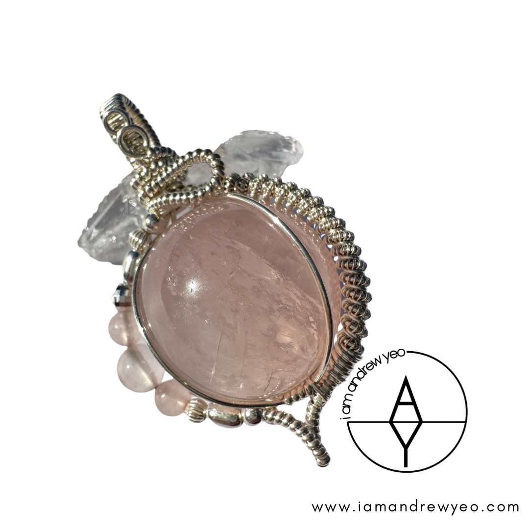 Adorned with a rose quartz sphere the stone of forgiveness  and  of universal love. It restores trust and harmony in relationships, encouraging unconditional love. Rose Quartz purifies and opens the heart at all levels to promote love, self-love, friendship, deep inner healing and feelings of peace.